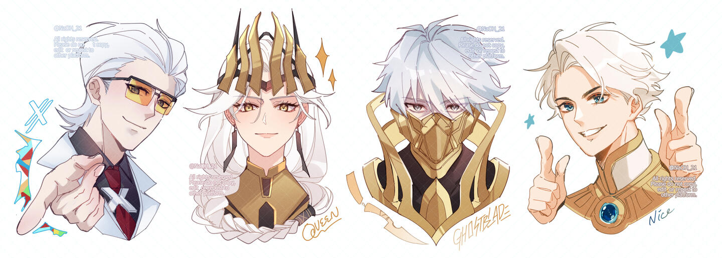 The price for default format (the first 2 samples) is USD 200 / IDR 1.500.000 but can also be fitted to your budget.For default format the client will get 1 full-rendered thigh up, 1 full body semi-chibi (front and back view), 2 different expression chibi, custom simple layout, eye details and 2 accessories.※ Price doesn't include character design and may increase due to client's request. Contact me for further inquiries.